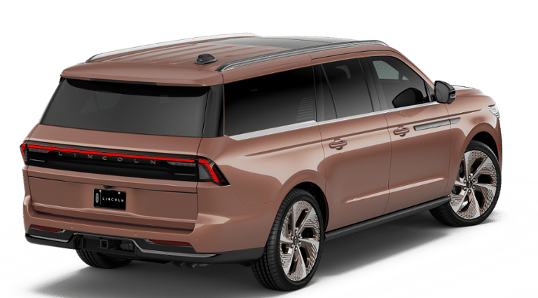 Sunrise Copper Metallic Pearlcoat 2026 Lincoln Navigator L Black Label Equipment Group 801A Black Label (Auto Heated/Ventilated Opulence Leather Captain's Chairs, BlueCruise Equipped (4-Years Included), Lincoln App, Lincoln Digital Experience, Radiant Copper Grille, Radio: Revel Ultima 3D Audio System, SiriusXM with 360L (3 Months Trial), Special Edition Radiant Copper Badge, and Wheels: 24 Radiant Copper Aluminum), Lincoln Connectivity Package (4-Years Included), Lincoln Security Package, 28 Speakers, 3rd row seats: split-bench, 4-Wheel Disc Brakes, ABS brakes, Adaptive suspension, Adjustable pedals, Air Conditioning, All-Weather Floor Liners with Front and Rear Carpet Floor Mats, Alloy wheels, AM/FM radio: SiriusXM with 360L, Apple CarPlay/Android Auto, Atmospheric Theme, Audio memory, Auto High-beam Headlights, Auto Start-Stop Technology, Auto tilt-away steering wheel, Auto-dimming door mirrors, Auto-dimming Rear-View mirror, Auto-leveling suspension, Automatic temperature control, Brake assist, Bumpers: body-color, Compass, Delay-off headlights, Driver door bin, Driver vanity mirror, Driver's Seat Mounted Armrest, Dual front impact airbags, Dual front side impact airbags, Electronic Stability Control, Emergency communication system: 911 Assist, Enlighten Theme, Exterior Parking Camera Rear, Four wheel independent suspension, Front anti-roll bar, Front Bucket Seats, Front dual zone A/C, Front reading lights, Fully automatic headlights, Garage door transmitter, Head restraints memory, Heated door mirrors, Heated front seats, Heated rear seats, Heated steering wheel, HVAC memory, Illuminated entry, Leather steering wheel, Low tire pressure warning, Memory seat, Navigation system: Connected Navigation (1-year trial), Occupant sensing airbag, Outside temperature display, Overhead airbag, Overhead console, Panic alarm, Passenger door bin, Passenger seat mounted armrest, Passenger vanity mirror, Pedal memory, Power adjustable front head restraints, Power adjustable rear head restraints, Power door mirrors, Power driver seat, Power moonroof: Panoramic Vista Roof, Power passenger seat, Power steering, Power windows, Radio data system, Rain sensing wipers, Rear air conditioning, Rear anti-roll bar, Rear audio controls, Rear reading lights, Rear seat center armrest, Rear window defroster, Rear window wiper, Reclining 3rd row seat, Remote keyless entry, Security system, Speed control, Speed-sensing steering, Speed-Sensitive Wipers, Split folding rear seat, Spoiler, Steering wheel memory, Steering wheel mounted audio controls, Tachometer, Telescoping steering wheel, Tilt steering wheel, Traction control, Trip computer, Turn signal indicator mirrors, Variably intermittent wipers, Ventilated front seats, Ventilated rear seats, and Wheels: 22 High-Gloss Ebony Aluminum. All books & keys (when applicable), Mutli Function Steering Wheel Controls, iphone / Droid Navigation Compatible.