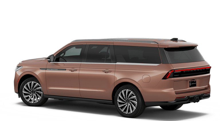 Copper Metallic 2026 Lincoln Navigator L Black Label Lincoln Connectivity Package (4-Years Included), Lincoln Security Package, 28 Speakers, 3rd row seats: split-bench, 4-Wheel Disc Brakes, ABS brakes, Adaptive suspension, Adjustable pedals, Air Conditioning, Alloy wheels, AM/FM radio: SiriusXM with 360L, Apple CarPlay/Android Auto, Audio memory, Auto High-beam Headlights, Auto Start-Stop Technology, Auto tilt-away steering wheel, Auto-dimming door mirrors, Auto-dimming Rear-View mirror, Auto-leveling suspension, Automatic temperature control, BlueCruise Equipped (4-Years Included), Brake assist, Bumpers: body-color, Compass, Delay-off headlights, Driver door bin, Driver vanity mirror, Driver's Seat Mounted Armrest, Dual front impact airbags, Dual front side impact airbags, Electronic Stability Control, Emergency communication system: 911 Assist, Enlighten Theme, Exterior Parking Camera Rear, Four wheel independent suspension, Front anti-roll bar, Front Bucket Seats, Front dual zone A/C, Front reading lights, Fully automatic headlights, Garage door transmitter, Head restraints memory, Heated door mirrors, Heated front seats, Heated rear seats, Heated steering wheel, HVAC memory, Illuminated entry, Leather steering wheel, Lincoln App, Lincoln Digital Experience, Low tire pressure warning, Memory seat, Navigation system: Connected Navigation (1-year trial), Occupant sensing airbag, Outside temperature display, Overhead airbag, Overhead console, Panic alarm, Passenger door bin, Passenger seat mounted armrest, Passenger vanity mirror, Pedal memory, Power adjustable front head restraints, Power adjustable rear head restraints, Power door mirrors, Power driver seat, Power moonroof: Panoramic Vista Roof, Power passenger seat, Power steering, Power windows, Radio data system, Radio: Revel Ultima 3D Audio System, Rain sensing wipers, Rear air conditioning, Rear anti-roll bar, Rear audio controls, Rear reading lights, Rear seat center armrest, Rear window defroster, Rear window wiper, Reclining 3rd row seat, Remote keyless entry, Security system, SiriusXM with 360L (3 Months Trial), Speed control, Speed-sensing steering, Speed-Sensitive Wipers, Split folding rear seat, Spoiler, Steering wheel memory, Steering wheel mounted audio controls, Tachometer, Telescoping steering wheel, Tilt steering wheel, Traction control, Trip computer, Turn signal indicator mirrors, Variably intermittent wipers, Ventilated front seats, Ventilated rear seats, and Wheels: 22 High-Gloss Ebony Aluminum. Multi Function Steering Wheel Controls, iphone / Droid Navigation Compatible.