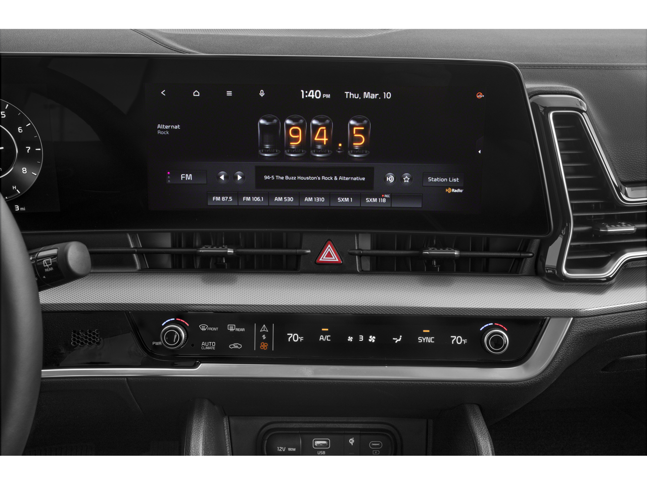 - Radio: Sistema de audio AM/FM/HD -incluye: pantalla táctil de 12.3 plg con navegación, 400 W con sistema de sonido HALOsonic Harman/Kardon, 8 altavoces, Apple CarPlay y Android Auto, Kia Connect, reconocimiento de voz, WiFi, actualización de mapas por aire, radio satélite, controles de audio montados en el volante y transmisión de audio y teléfono mediante Bluetooth