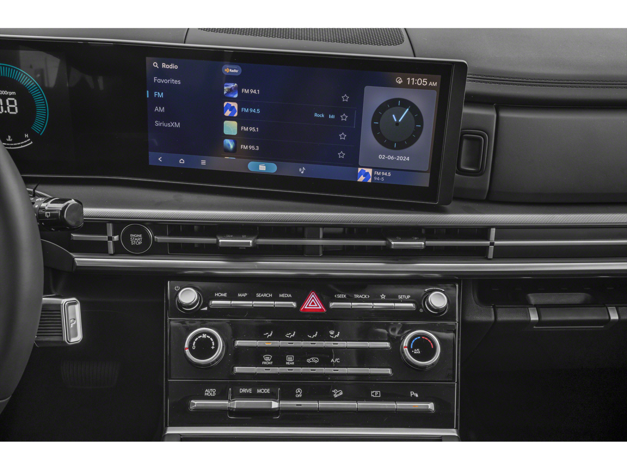 - Radio: Sistema de audio AM/FM/HD con pantalla de visualización -incluye: 6 altavoces, pantalla de 12.3 plg, Apple CarPlay, Android Auto, Bluetooth a manos libres con difusión de audio inalámbrica, conectividad USB, SiriusXM, sistema Blue Link+ connected car y modo silencioso en asiento trasero